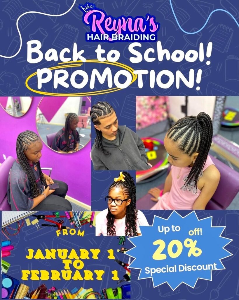 REYNA'S HAIR BRAIDING Professional Braiding & Hair Styling in Houston Call us Now Instagram Whatsapp Book an Appointment with us BOOK APPOINTMENT BELOW Select Braid Size Below Back to School Special Promo Book BOHEMIAN KNOTLESS BRAIDS Book REGULAR KNOTLESS BRAIDS Book BOB BOHO BRAIDS Book GYPSY BRAIDS Book BORA BORA BRAIDS Book FRENCH BRAIDS Book TRIANGLE BRAIDS Book SENEGALESE TWIST Book CORN ROWS Book FED IN BRAIDS Book HALF AND HALF BRAIDS Book JUMBO BOHEMIAN BRAIDS Book JUMBO KNOTLESS Book LEMONADE BRAIDS Book LOCS Book PASSION TWIST Book PLAIT BRAIDS Book STITCH BRAIDS Book ISLAND TWIST Book TOUCH UP BRAIDS Book EXTRA SERVICES Book